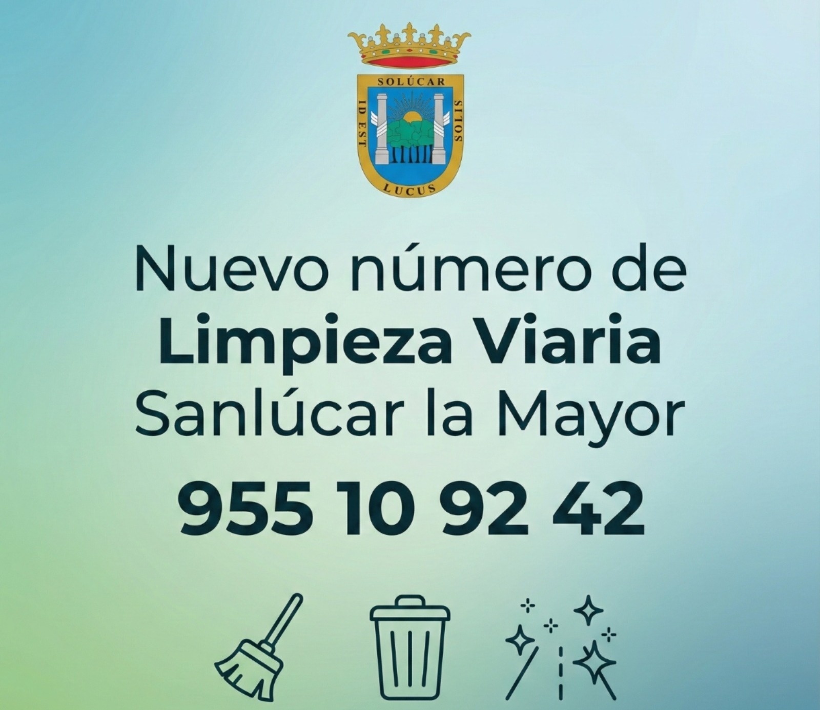 El Ayuntamiento de Sanlúcar la Mayor ponen en marcha un nuevo número directo para comunicar incidencias de limpieza urbana: 955 10 92 42.