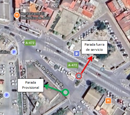 Parada provisional: Glorieta de la Concordia (Parada de Taxis, a la espalda de la actual).