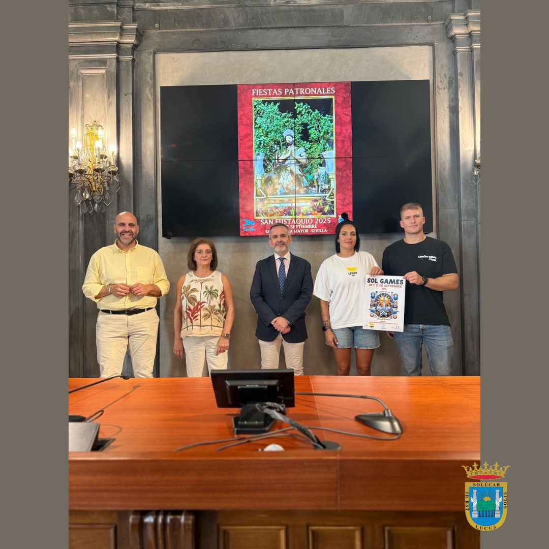 La Casa de la Provincia ha acogido hoy la presentación oficial de los “Sol Games”, un evento deportivo inédito que se incorpora este año al programa de las Fiestas Patronales de San Eustaquio. Se trata del primer campeonato de crosstraining que se celebrará en Sanlúcar la Mayor, organizado por el Ayuntamiento junto a la empresa local Lemon Box.