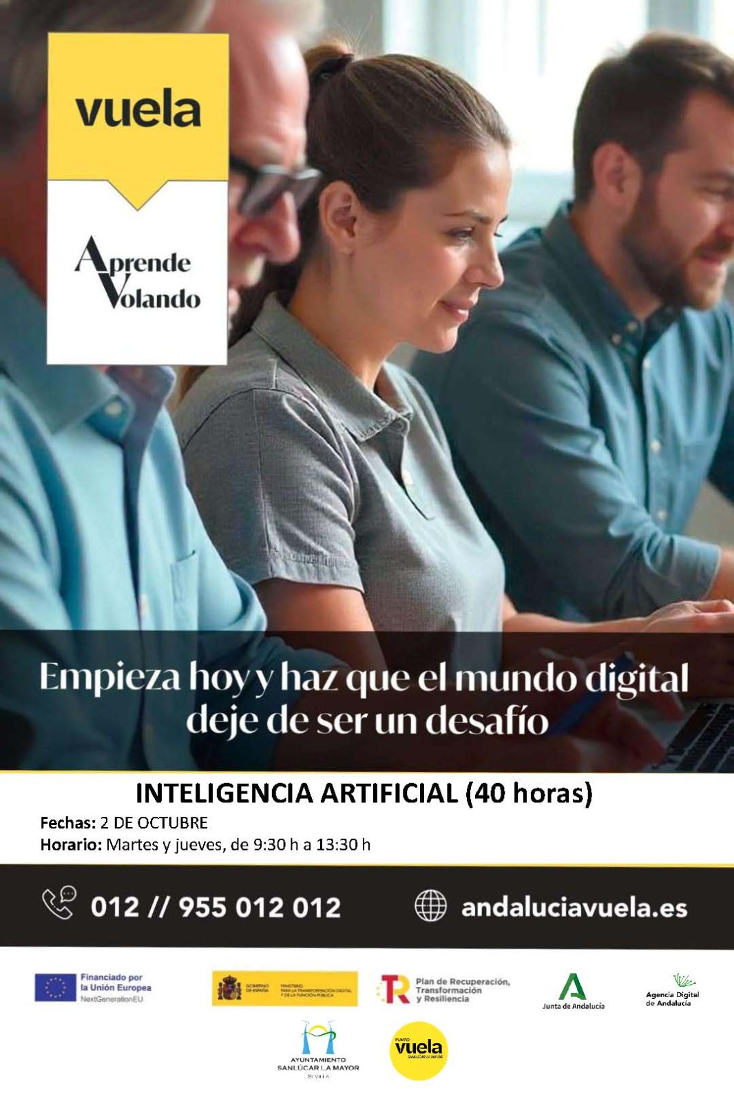 El Punto Vuela de Sanlúcar la Mayor, dependiente de la Delegación de Nuevas Tecnologías, a cargo de Alfredo González, en colaboración con Adecco, lanza una formación 100 % gratuita que te abrirá las puertas al futuro digital.