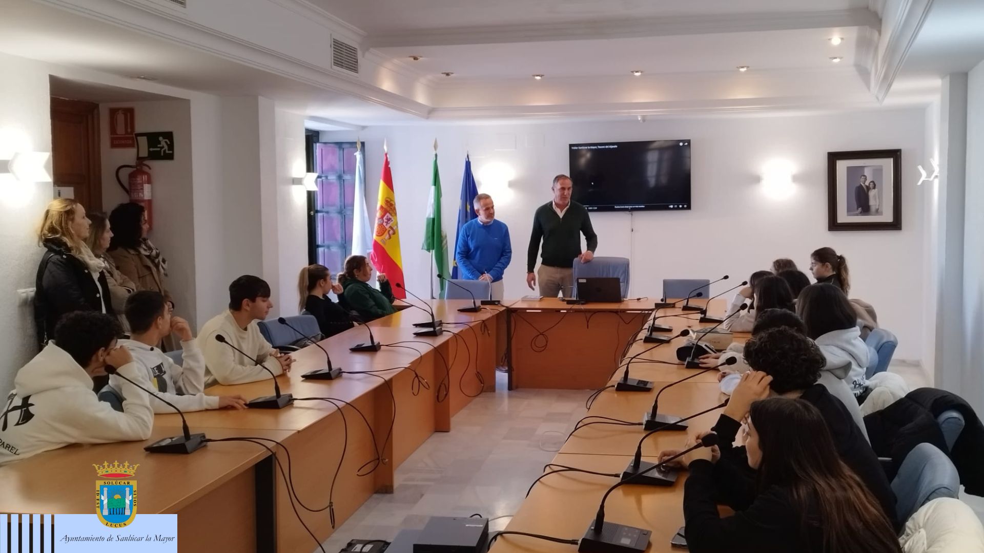 El Ayuntamiento de Sanlúcar la Mayor ha recibido hoy al alumnado del Instituto "Amaldi" de Roma, que durante una semana ha participado en un intercambio educativo con familias de estudiantes del IES "Lucus Solis". Este programa, que promueve el aprendizaje cultural y lingüístico, se completará en febrero, cuando el alumnado sanluqueño viaje a Italia.