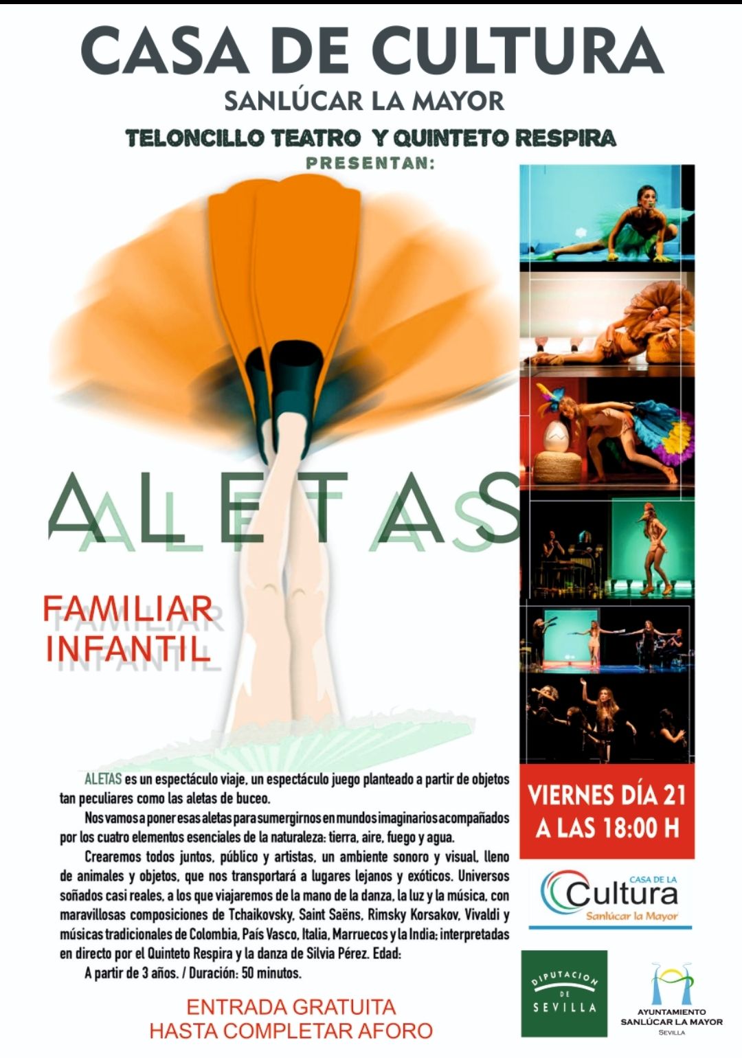 El teatro de la Casa de Cultura acoge el gran espectáculo familiar "ALETAS", que nos sumergirá en un mundo de fantasía, con danza y músicos en directo, de gira por toda España.