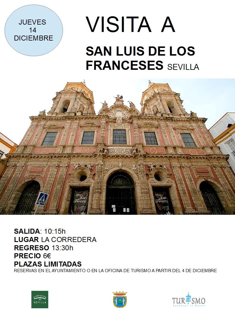 El Área de Turismo del Ayuntamiento de Sanlúcar la Mayor en colaboración con la Diputación de Sevilla, organiza para el próximo jueves 14 de diciembre una visita guiada al conjunto monumental compuesto por la Iglesia de San Luis de los Franceses y antiguo noviciado jesuita, uno de los enclaves que mejor se conservan del barroco pleno en Sevilla.