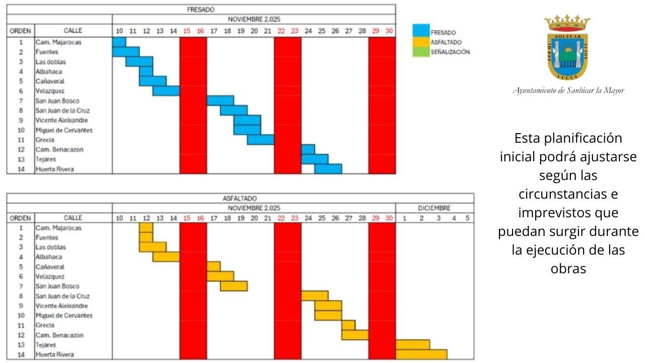 El lunes 10 de noviembre comenzará en Sanlúcar la Mayor el esperado Plan de Asfaltado y Mejora de Calles 2025, impulsado por la Delegación de Urbanismo del Ayuntamiento, que dirige Álvaro García.