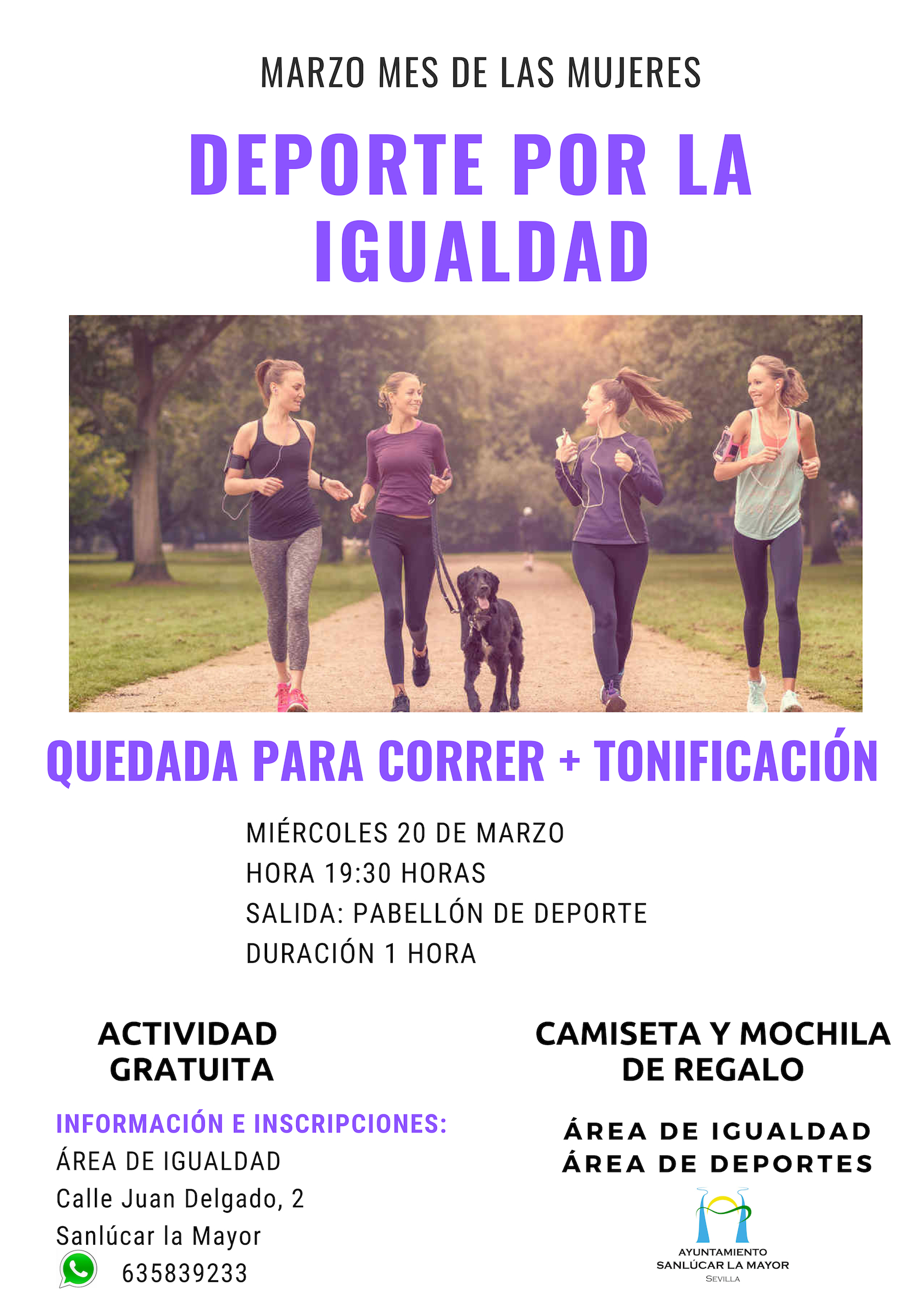 DEPORTE POR LA IGUALDAD ORGANIZA ESTE MIÉRCOLES UNA QUEDADA PARA CORRER Y UNA CLASE DE TONIFICACIÓN POR EL MES DE LAS MUJERES