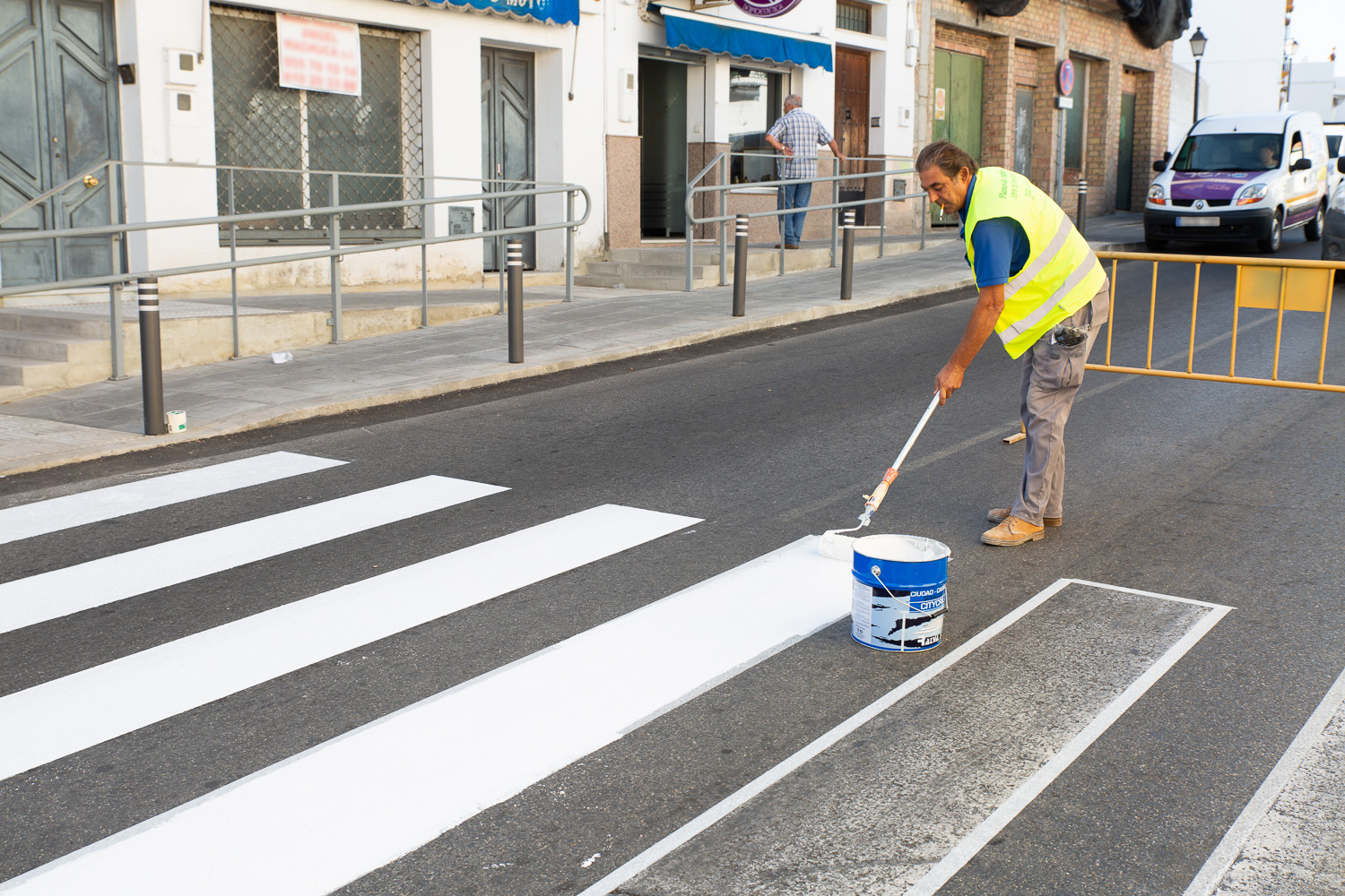 Los operarios de Obras y Servicios con cargo a la Iniciativa de Cooperación Local del Ayuntamiento de Sanlúcar la Mayor han comenzado hoy con las labores de mantenimiento de los pasos de peatones de la localidad.