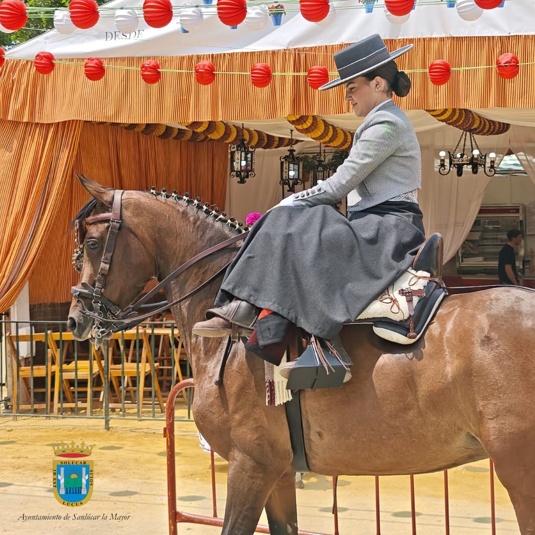 Sanlúcar la Mayor celebró el sábado de Feria, en el recinto ferial, una cita especialmente colorida: la II Pasarela Vaquera de la Feria. El evento, que consiguió captar la atención del público en una de las calles centrales del Real, resultó un verdadero desfile de elegancia, tradición y respeto por el mundo del caballo.