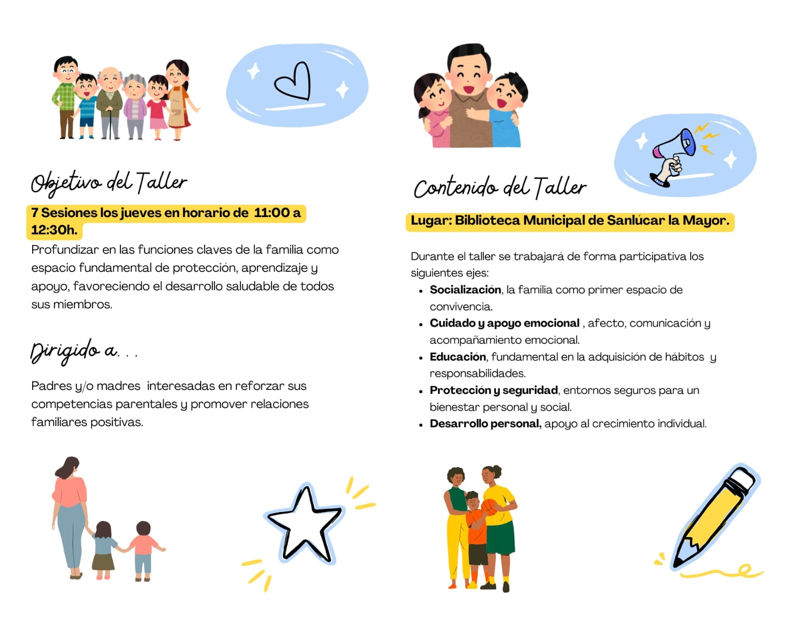 ¡Apúntate y participa en este espacio formativo dirigido a madres y/o padres! Para inscripciones, llama al 955 100 600 (ext. 3072) o escribe a asuntossociales@sanlucarlamayor.es